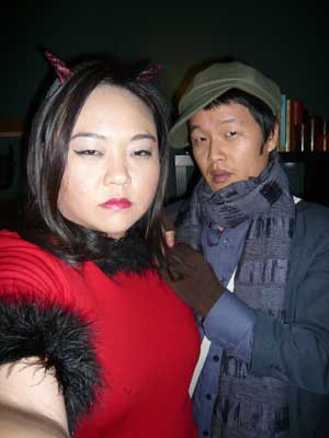 A Vampy Devil and a 1930s Paper Boy (or Oliver Twist, depending on his mood). Not too shabby for something we threw together at the last minute. |